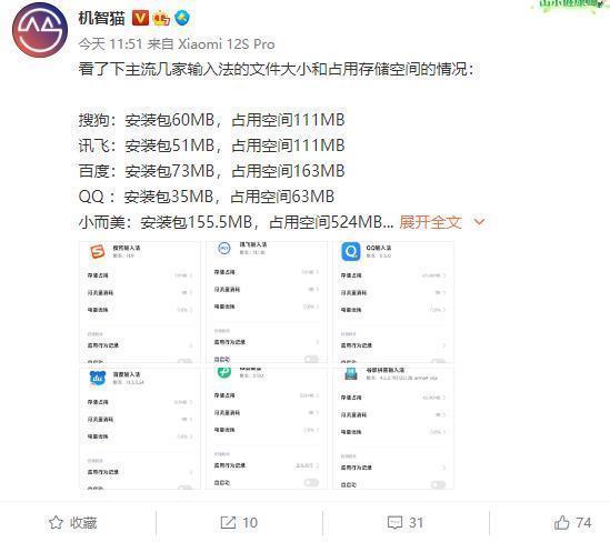 2022年9月15日消息:目前,微信输入法(微信键盘App)已开启小范围测试,据接受内测的网友称,该APP安装包大小为155.5MB,安装后占用524MB存储空间,内测界面干净、无广告。