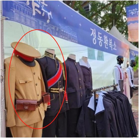 报道称,首尔市政府于23日至24日在贞洞一带举行文化活动——“贞洞夜行”,旨在展现韩国近代历史和文化。活动现场设有服装租赁摊位,向市民有偿租借韩国近代时期的代表服装,供市民更换后进行参观。然而有人发现,其中竟有殖民统治时期日本天皇和日本宪兵队的相关服饰。此事被韩国网民在社交媒体上曝光后,立即引发了强烈的舆论争议。
