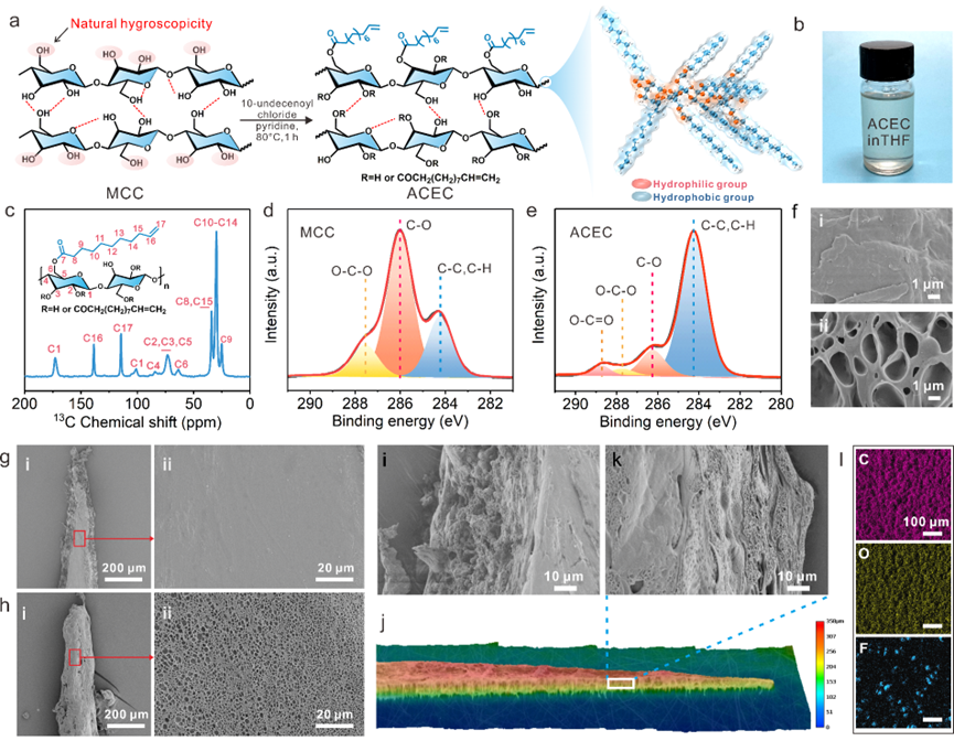 纤维素是地球上最古老、最丰富的天然高分子,是一种具有强吸湿性的可再生材料,其分子骨架上丰富的羟基为雾收集提供了高效的亲水域。然而,连续的亲水域会导致表面成核液滴的钉扎以及凝聚水膜的界面屏蔽。