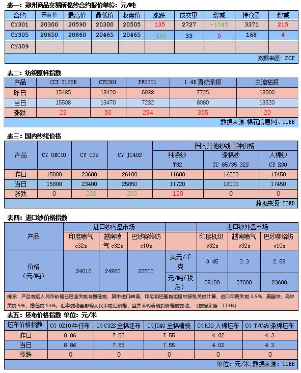10月10日,棉花现货指数CCI 3128B报价至15508元/吨(+23);CY Index C32S报价24455元/吨(0);FCY Index C32S(进口棉纱价格指数)报价28511元/吨(0);部分地区棉纱价格: