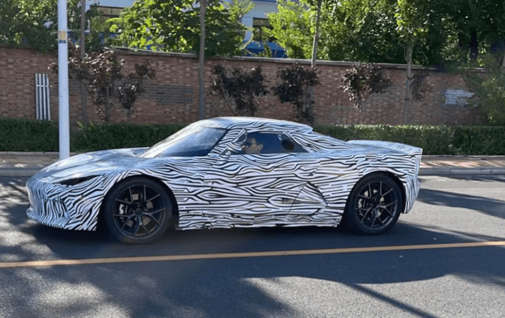 从谍照看,新车覆盖严密的伪装,但是依然能够看清楚超跑的模样,采用扁平化的车头、低趴的车身姿态、双门两座等。前脸采用封闭式格栅,表明其纯电版身份,还配备犀利的三角形大灯组,带有铲型结构的前唇,看起来很有攻击性。前风挡玻璃辨识度也很高,展现出满满的战斗姿态。