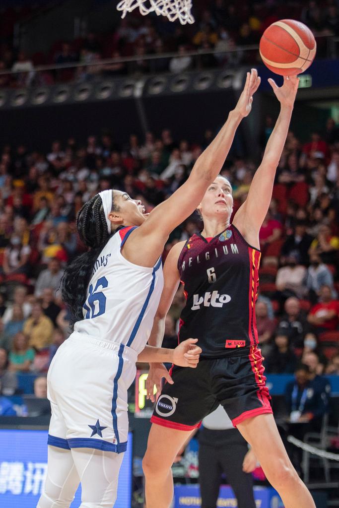 同在A组的美国队和比利时队上演强强对话。刚刚打完美国女子职业篮球联赛(WNBA)总决赛的普拉姆、格雷、威尔逊此役未出战,人员不整的美国队上半场打得并不轻松。她们带着10分优势进入第二节。比利时队将比分迫近至33:38之后,美国队由上届赛事最有价值球员布里安娜·斯图尔特连得4分稳住局面。下半场美国队稳扎稳打拿下胜利,斯图尔特贡献全场最高的22分。