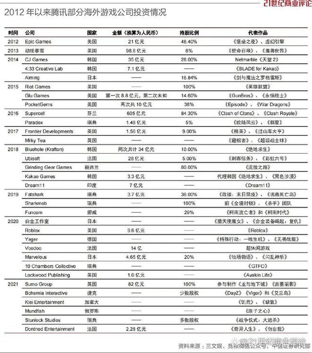 靠着多笔投资,腾讯搭建起庞大的海外游戏版图。